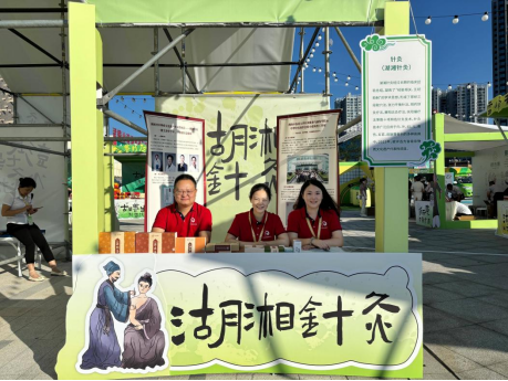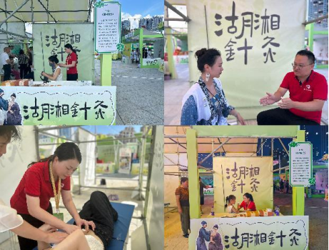 活动现场,湖湘针灸展位布置独具匠心,以清新的绿色为主色调,搭配古朴的针灸文化元素,吸引了大量参观者驻足。展位上,详细介绍湖湘针灸的展板引人注目。湖湘针灸经过长期的临床经验总结,凝练了“经脏相关、五经助制”的学术思想,形成了胃经三段取穴法、张力平衡针法、隔药饼灸疗法等数十项特色针灸技术,广泛应用于内、外、妇、儿、骨伤、五官、皮肤等各科的多种疾病中,并在2023年被评选为省级非物质文化遗产代表性项目。