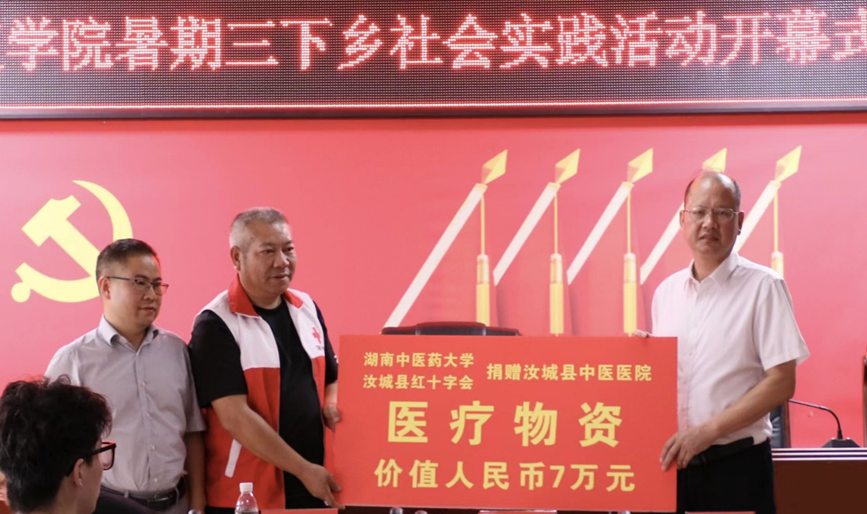 开幕仪式由汝城县卫生健康局党委委员、副局长袁余清主持。会议第一项,汝城县人民政府副县长钟莉红向本次活动表示了巨大的支持,同时希望同学们可以在暑期“三下乡”社会实践活动中,认识汝城、了解汝城、爱上汝城,并且邀请大家在不久的将来一同建设汝城;会议第二项,由汝城县中医医院党委书记陈志强进行医院情况汇报,汇报从医院级别、医疗设施、临床工作、科室管理等多方面展示了汝城县中医医院的迅速发展和巨大前景;会议第三项,必威betway平台党委书记李继红代表学院向汝城县中医医院表示衷心的感谢,同时向全体师生提出三点希望,第一,要充分重视本次活动,在实践中丰富理论知识;第二,不要拘泥于医药实践,要在汝城这片红色土地上感受革命先烈的精神,不忘初心,方得始终;第三,暑期“三下乡”社会实践活动始终是以安全为首要,一切行动听从指挥,充分展现必威betway平台的精神风貌,最后李继红书记预祝本次暑期实践活动顺利完成;会议第四项,汝城县红十字会工会和必威betway平台向汝城县中医医院捐赠价值七万元的医疗物资,由汝城县红十字会工会主席、三级主任科员朱孝矿、汝城县中医医院党委书记陈志强和必威betway平台党委书记李继红进行交接仪式并合影留恋。